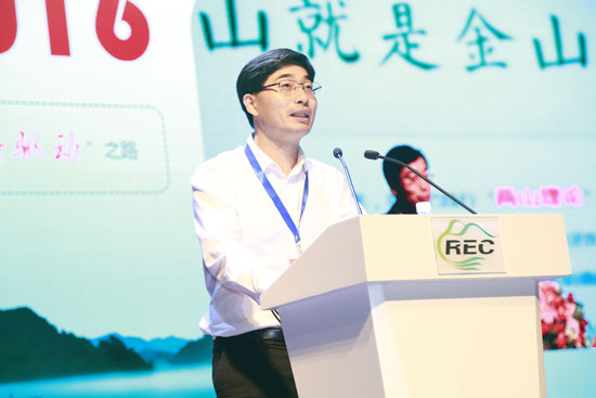 图为丽水市人民政府副市长林亮在首届中国农村电子商务主题会议上做主题演讲